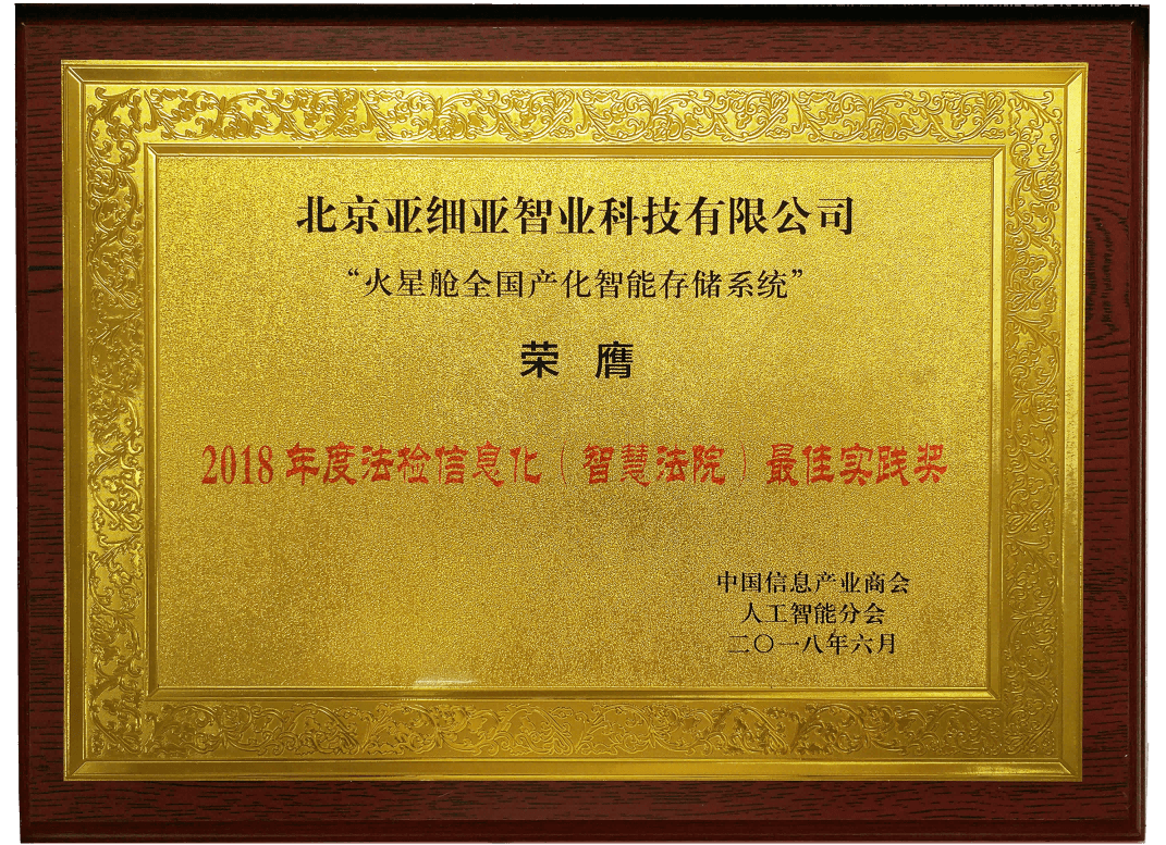 2018年度法檢信息化(智慧法院)最佳實踐獎——證書
